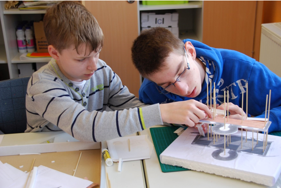 Die Schüler und Schülerinnen der Geschwister-Scholl-Oberschule Auersbach lernten, eigene Ideen zu entwickeln, zu formulieren, darzustellen und dann zu präsentieren. Dazu beschäftigten sie sich mit Gegebenheiten, Eigenschaften, Fragestellungen, Problematiken, Hindernissen und Vorschriften für einen architektonischen Entwurf. Die Anbindung an einen konkreten Raum, den Rittersaal der Burg Schönfels, stellte die Schüler unausweichlich vor zahlreiche Probleme, die es in der Entwurfsarbeit zu bewältigen galt. Es wurde verdeutlicht, wie komplex die Zusammenhänge von baulichen und historischen Gegebenheiten sind, welche Rolle die Wünsche der Eigentümer und des Denkmalschutzes spielen und wie man Nutzungswünsche, Vorschriften und Grundanforderungen (Raumbedarf, Toiletten, Garderoben...) miteinander vereinbart. Kern des Vermittlungsziels war unter anderem, die besonderen Kompetenzen eines Architekten, die für den Entwurf benötigt werden, herauszuarbeiten und für die Schüler und Schülerinnen erfahrbar zu machen. Ein "rudimentäres Entwerfen" durch die Schüler und Schülerinnen ohne Anleitung wurde vermieden. Vielmehr wurde die Chance genutzt, dass die Schüler und Schülerinnen von einem Architekten aus der Praxis lernen können, was es bedeutet, einen Entwurf von einer ersten Utopie bis zu einer umsetzbaren Fassung zu bearbeiten.