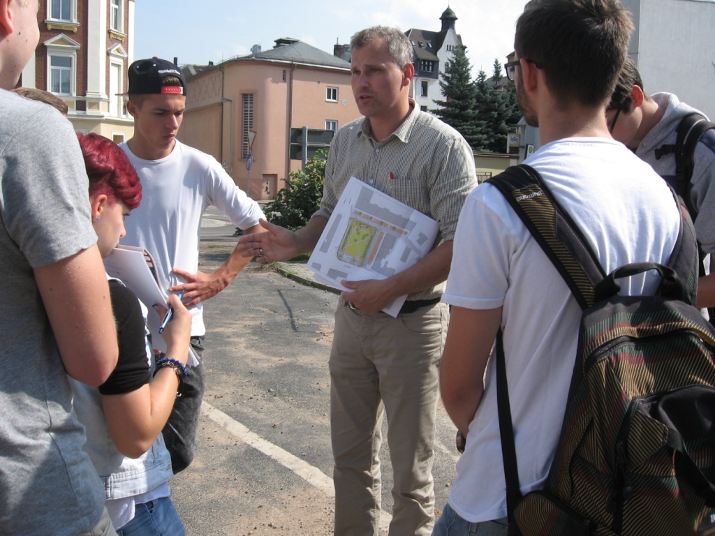 In Mittweida beschäftigten sich die Zehntklässler der Fichte-Oberschule mit dem Stadtraum um den bereits teilweise neu gestalteten Technikumplatz. Gemeinsam mit ihrem Architekten analysierten die Schüler anhand von Modellen und unterschiedlichen Planarten die Stadtstruktur vor Ort. Verschiedene Plätze in Mittweida wurden im Hinblick auf ihre Nutzung, Bedeutung, Infrastruktur und Bebauung städtebaulich untersucht. Für ein momentan ungenutztes Gebäude am Technikumplatz suchten die Schüler nach möglichen Nutzungen und erarbeiteten damit zusammenhängend verschiedene Fassadengestaltungen für das Gebäude.