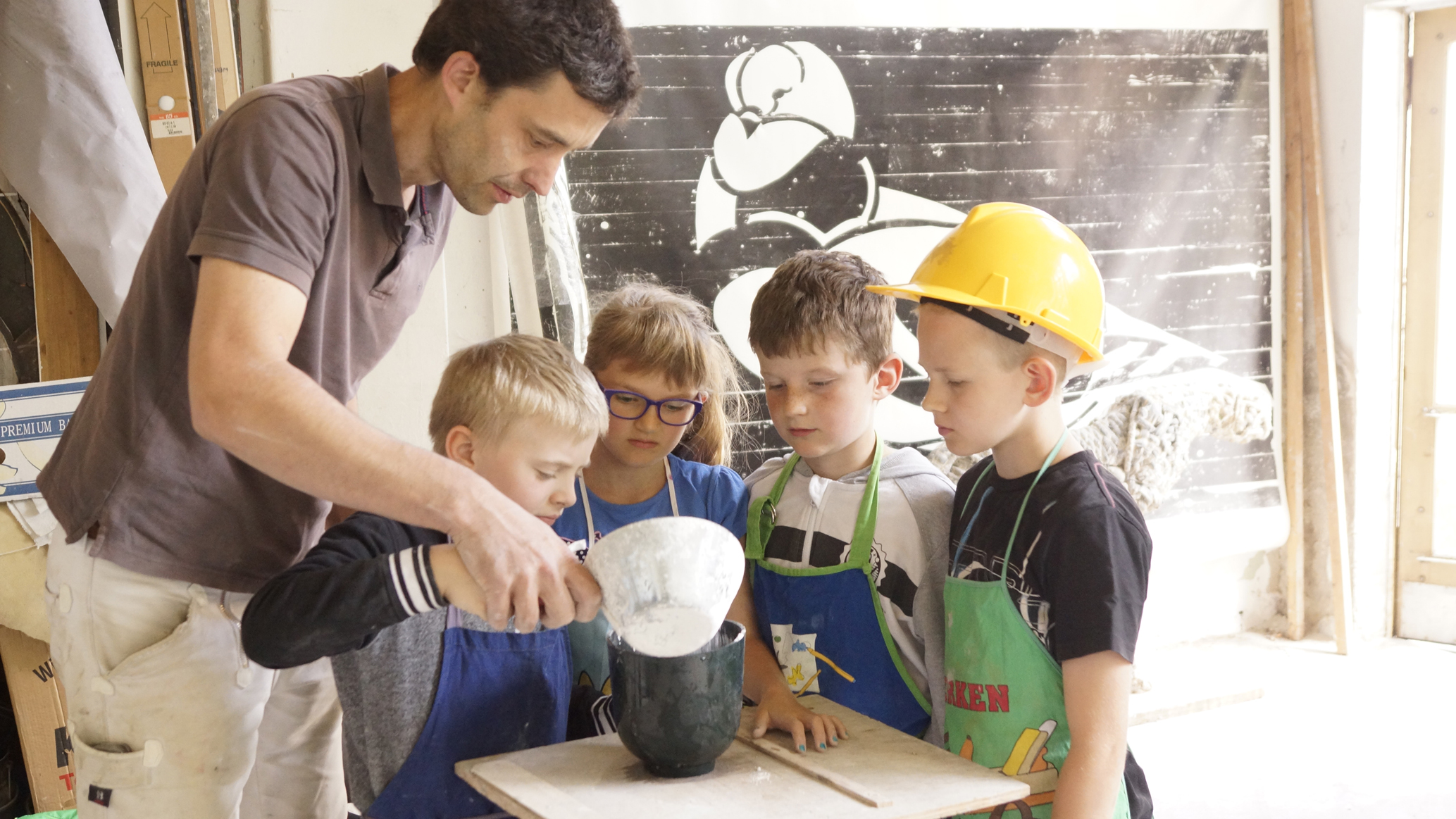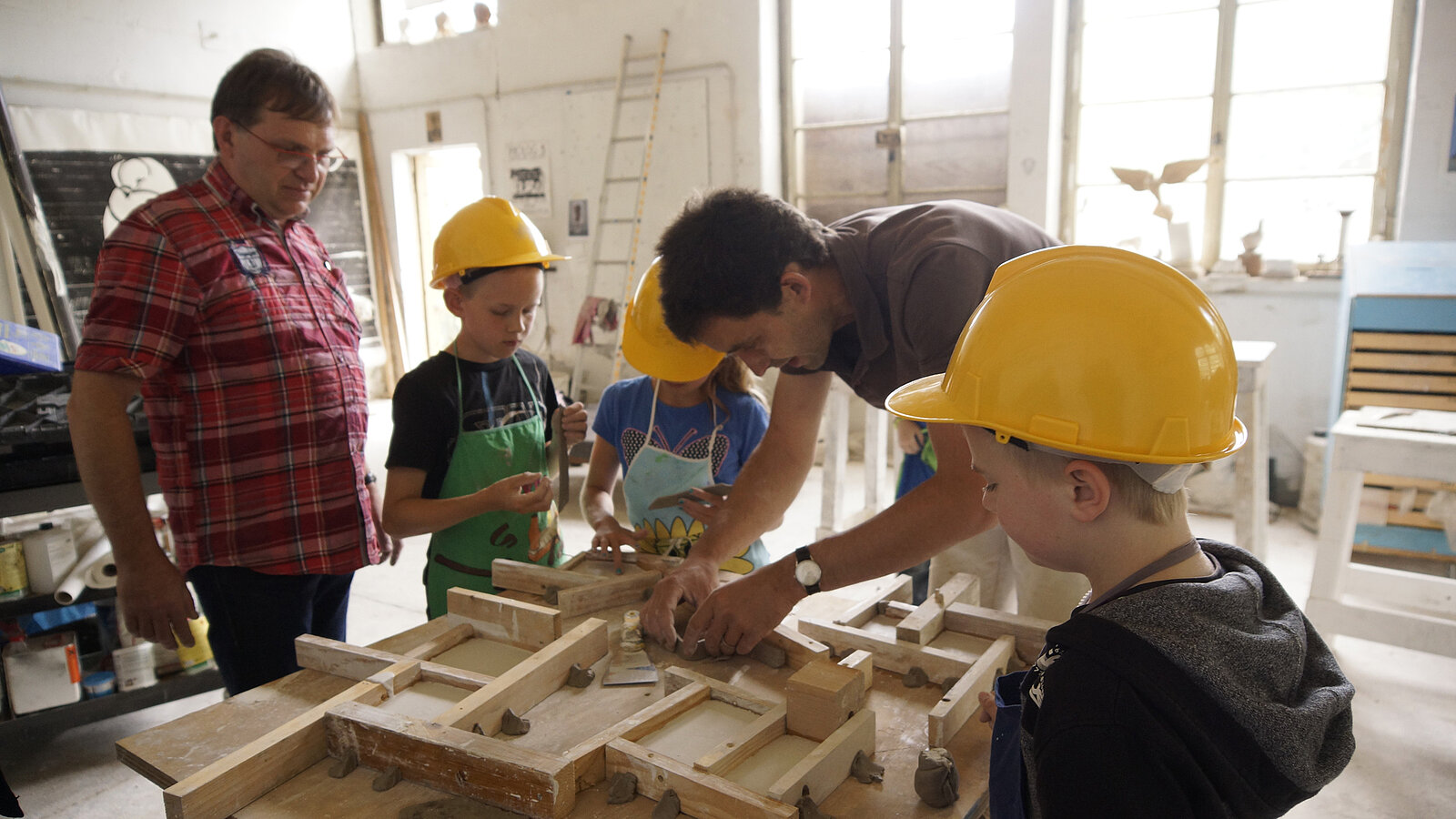 In der Wilhelm-Tempel-Schule beschäftigten sich die Grundschüler mit ihrem Heimatort Niedercunnersdorf. Die Kinder überlegten zunächst, was sie in ihrem Ort besonders zeigenswert finden. Sie entwarfen eine Route für eine Stadtführung und gestalteten so selbst die "Einführungsstunde" für die beiden Architektinnen. In der weiteren Beschäftigung wurden die vorherrschenden Farben und Materialien der Gebäude in der Gemeinde gesammelt. Im Experiment erforschten die Schüler schließlich verschiedene ortsbildprägende Konstruktionsarten und lernten so die typischen Bauweisen ihrer Heimatregion und deren Entstehungsgeschichte kennen.