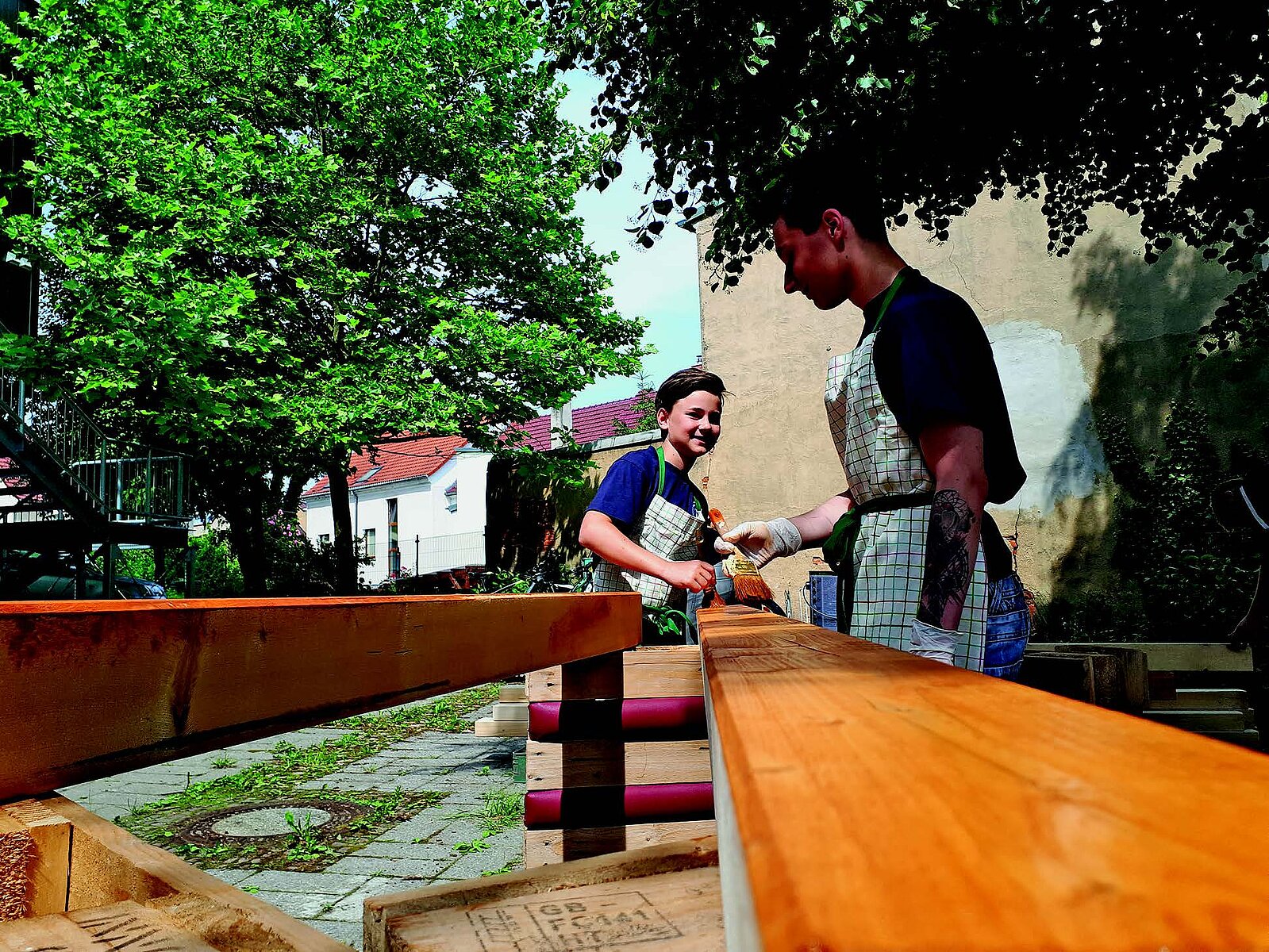 Die Oberschüler der 8. und 9. Klasse der Internationalen Schule Meerane haben sich im Rahmen des Projekts dem Fachwerkbau gewidmet. Ziel war es, Grundlagen für den Bau der Überdachung eines Lehmbackofens zu schaffen und die praktischen Arbeiten dazu zu beginnen. Die Schüler arbeiteten unter Anleitung ihres Lehrers Holger Dörr und der Stadtplanerin Andrea Schreyer. Sie informierten sich über die Technik und Geschichte des Holzfachwerks und beschäftigten sich mit der Geschichte eines von Gehöften in Fachwerkbauweise geprägten Dorfes. Schwerpunkt war die praktische Arbeit mit Holz bis hin zum Bau von Modellen.