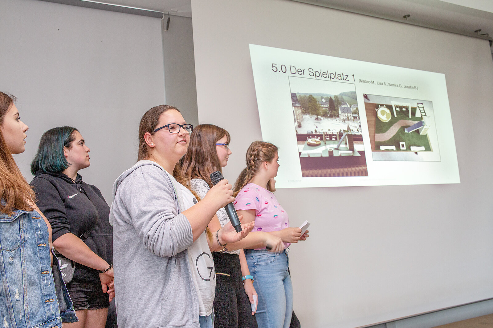 Die Schülerinnen und Schüler der Oberschule Burkhardtsdorf nahmen sich dem Lichtspielhaus „Scala“ in ihrem Dorf an. Das 1927 errichtete Kino prägt noch immer das Ortsbild, verfällt aber seit vielen Jahren. Zum Beginn des Projektes setzte sich die Projektgruppe mit der Ortstruktur und der Nutzungsgeschichte der „Scala“ auseinander, um anschließend geeignete Ideen für eine Wiederbelebung des Hauses finden zu können. So entstand der Vorschlag, die „Scala“ als eine vor allem für Jugendliche attraktive Kirche umzunutzen, da es in Burkhardtsdorf seit dem Zweiten Weltkrieg keine Kirche mehr gibt. Auch die Idee, das Lichtspielhaus künftig Teil einer Freiluft-Theaterbühne werden zu lassen, ging vom Erhalt des maroden, in der Bevölkerung aber immer noch beliebten Gebäudes aus. Aufgrund des schlechten Bauzustandes und der Lage im Hochwassergebiet entschied sich aber die Mehrheit der Schülerinnen und Schüler, an seiner Stelle neue Spielflächen zu planen. Skizzen, Zeichnungen und Ideenmodelle belegen den kreativen Findungsprozess neuer Nutzungsvarianten.